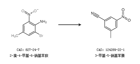 2.通过2-溴-4-甲基-6-硝基苯胺合成3-甲基-5-硝基苯腈