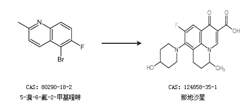 2.通过5-溴-6-氟-2-甲基喹啉合成那地沙星