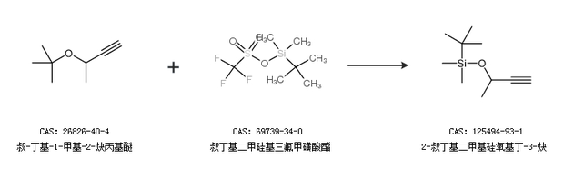 2.通过叔-丁基-1-甲基-2-炔丙基醚和叔丁基二甲硅基三氟甲磺酸酯合成2-叔丁基二甲基硅氧基丁-3-炔