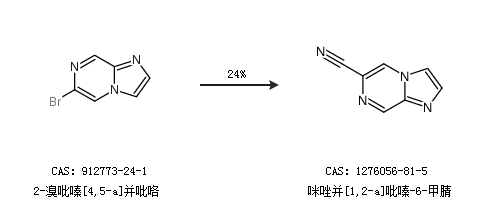 2.通过2-溴吡嗪[4,5-a]并吡咯合成咪唑并[1,2-a]吡嗪-6-甲腈,收率约24%;