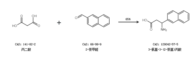 1.通过丙二酸和2-萘甲醛合成3-氨基-3-(2-萘基)丙酸,收率约65%;
