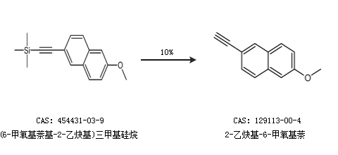 1.通过(6-甲氧基萘基-2-乙炔基)三甲基硅烷合成2-乙炔基-6-甲氧基萘,收率约10%;