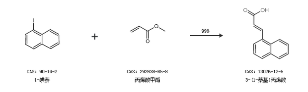 2.通过1-碘萘和丙烯酸甲酯合成3-(1-萘基)丙烯酸,收率约99%;