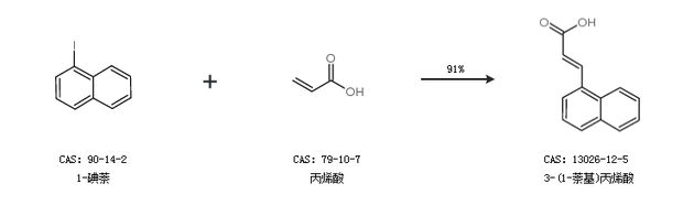 1.通过1-碘萘和丙烯酸合成3-(1-萘基)丙烯酸,收率约91%;