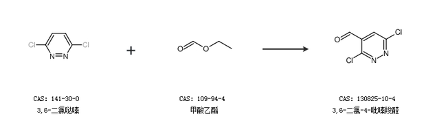 1.通过3,6-二氯哒嗪和甲酸乙酯合成3,6-二氯-4-吡嗪羧醛