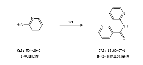 2.通过2-氨基吡啶合成N-(2-吡啶基)烟酰胺,收率约34%;