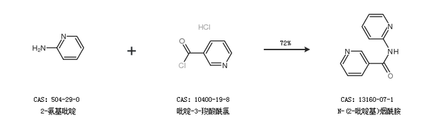1.通过2-氨基吡啶和吡啶-3-羧酸酰氯合成N-(2-吡啶基)烟酰胺,收率约72%;