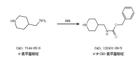 1.通过4-氨甲基哌啶合成4-N-CBZ-氨甲基哌啶,收率约49%;