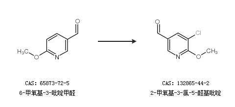 1.通过6-甲氧基-3-吡啶甲醛合成2-甲氧基-3-氯-5-醛基吡啶
