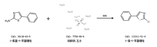 1.通过2-氨基-5-苯基噻唑和硫酸铜,五水合成2-溴-5-苯基噻唑,收率约99%;