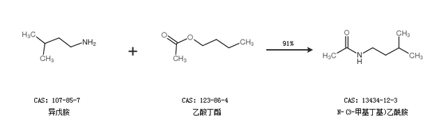 1.通过异戊胺和乙酸丁酯合成N-(3-甲基丁基)乙酰胺,收率约91%;