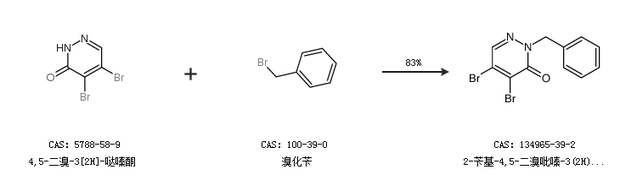 英文别名 2-benzyl-4.5-dibromo-2H-pyridazin-3-one;4,5-dibromo-2-benzylpyridazin-3(2H)-one;2-benzyl-4,5-dibromo-3(2H)-pyridazinone;3(2H)-Pyridazinone,4,5-dibromo-2-(phenylmethyl);2-benzyl-4,5-dibromopyridazin-3(2H)-one;