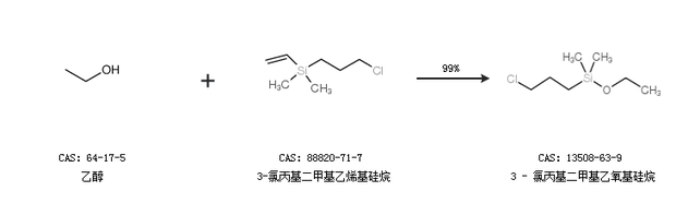 1.通过乙醇和3-氯丙基二甲基氯硅烷合成3 - 氯丙基二甲基乙氧基硅烷,收率约99%;