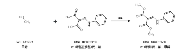1.通过甲醇和2-(苯基亚肼基)丙二酸合成2-(苯肼)丙二酸二甲酯,收率约98%;
