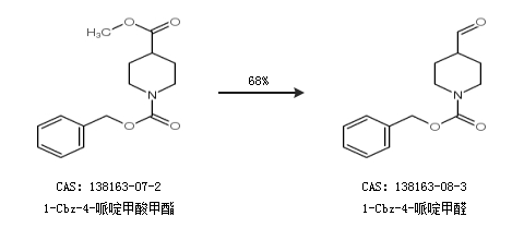 2.通过1-Cbz-4-哌啶甲酸甲酯合成1-Cbz-4-哌啶甲醛,收率约68%;