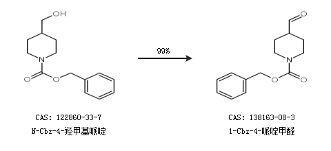 1.通过N-Cbz-4-羟甲基哌啶合成1-Cbz-4-哌啶甲醛,收率约99%;