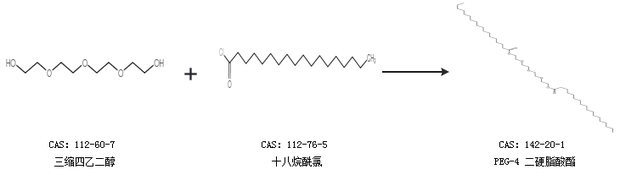 1.通过三缩四乙二醇和十八烷酰氯合成PEG-4 二硬脂酸酯