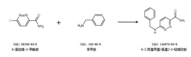 2.通过6-氯哒嗪-3-甲酰胺和苯甲胺合成6-[(苯基甲基)氨基]-3-哒嗪羧胺