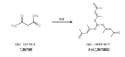 1.通过乙酰丙酮合成水合乙酰丙酮钪,收率约83%;
