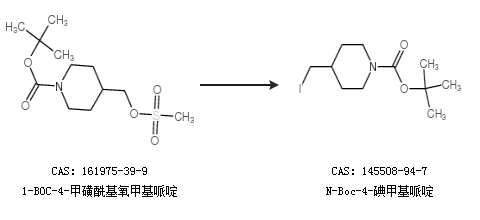 2.通过1-BOC-4-甲磺酰基氧甲基哌啶合成N-Boc-4-碘甲基哌啶