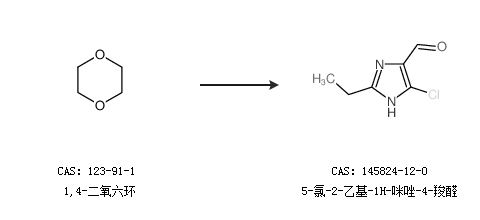 2.通过1,4-二氧六环合成5-氯-2-乙基-1H-咪唑-4-羧醛