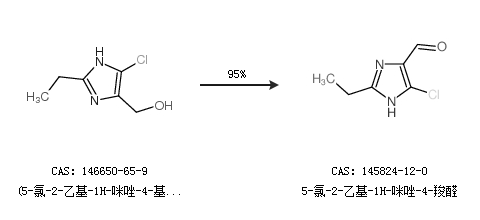 1.通过(5-氯-2-乙基-1H-咪唑-4-基)-甲醇合成5-氯-2-乙基-1H-咪唑-4-羧醛,收率约95%;