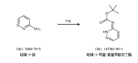 1.通过哒嗪-3-胺合成吡嗪-3-甲基-氨基甲酸叔丁酯,收率约77%;