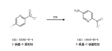 1.通过2-硝基-5-氯吡啶合成5-氨基-2-硝基吡啶,收率约25%;