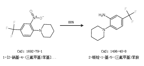 1.通过1-[2-硝基-4-(三氟甲基)苯基]哌啶合成2-哌啶-1-基-5-(三氟甲基)苯胺,收率约88%;