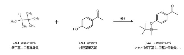 1.通过叔丁基二甲基氯硅烷和对羟基苯乙酮合成1-(4-{[叔丁基(二甲基)-甲硅烷基]氧基}苯基)乙酮,收率约99%;