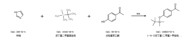 2.通过咪唑、叔丁基二甲基氯硅烷和对羟基苯乙酮合成1-(4-{[叔丁基(二甲基)-甲硅烷基]氧基}苯基)乙酮,收率约96%;