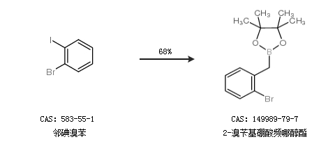 1.通过邻碘溴苯合成2-溴苄基硼酸频哪醇酯,收率约68%;