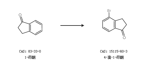 1.通过3-(2-溴苯基)丙酸合成4-溴-1-茚酮,收率约77%;