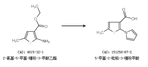 1.通过2-氨基-5-甲基-噻吩-3-甲酸乙酯合成5-甲基-2-吡咯-3-噻吩甲酸