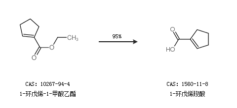2.通过1-环戊烯-1-甲酸乙酯合成1-环戊烯羧酸,收率约95%;