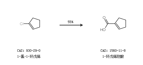 1.通过1-氯-1-环戊烯合成1-环戊烯羧酸,收率约55%;
