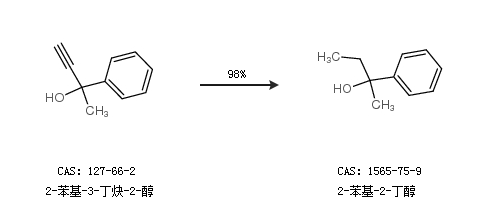 1.通过2-苯基-3-丁炔-2-醇合成2-苯基-2-丁醇,收率约98%;
