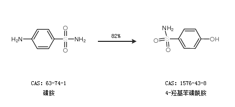 1.通过磺胺合成4-羟基苯磺酰胺,收率约82%;