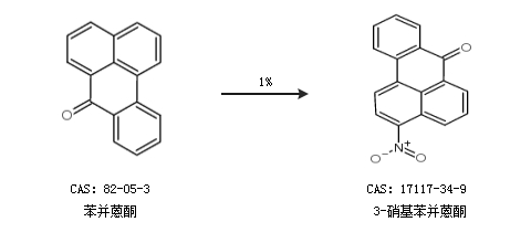 2.通过苯并蒽酮合成3-硝基苯并蒽酮,收率约1%;
