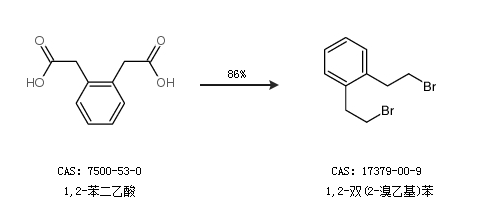 1.通过1,2-苯二乙酸合成1,2-双(2-溴乙基)苯,收率约86%;