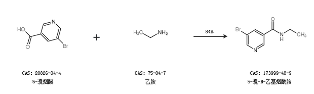 1.通过5-溴烟酸和乙胺合成5-溴-N-乙基烟酰胺,收率约84%;