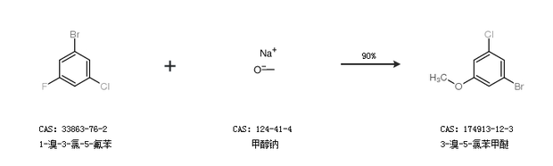 1.通过1-溴-3-氯-5-氟苯和甲醇钠合成3-溴-5-氯苯甲醚,收率约90%;