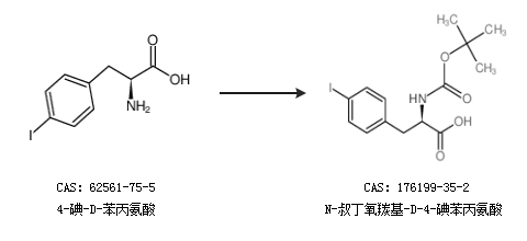 1.通过4-碘-D-苯丙氨酸合成N-叔丁氧羰基-D-4-碘苯丙氨酸