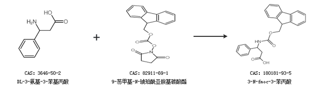 2.通过DL-3-氨基-3-苯基丙酸和9-芴甲基-N-琥珀酰亚胺基碳酸酯合成3-N-fmoc-3-苯丙酸