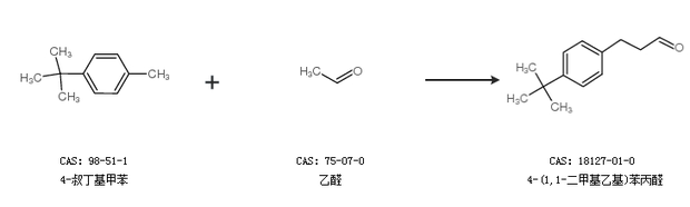 2.通过4-叔丁基甲苯和乙醛合成4-(1,1-二甲基乙基)苯丙醛