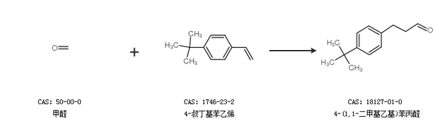 1.通过甲醛和4-叔丁基苯乙烯合成4-(1,1-二甲基乙基)苯丙醛