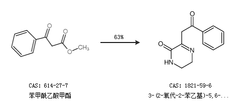 1.通过苯甲酰乙酸甲酯合成3-(2-氧代-2-苯乙基)-5,6-二氢吡嗪-2(1h)-酮,收率约63%;