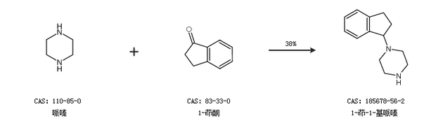 1.通过哌嗪和1-茚酮合成1-茚-1-基哌嗪,收率约38%;
