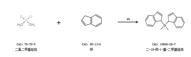 2.通过二氯二甲基硅烷和茚合成二-1H-茚-1-基-二甲基硅烷,收率约4%;