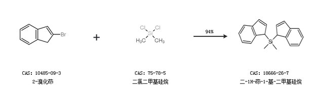 1.通过2-溴化茚和二氯二甲基硅烷合成二-1H-茚-1-基-二甲基硅烷,收率约94%;